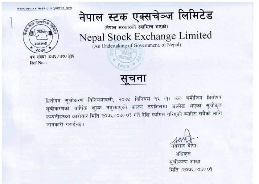 धितोपत्र सुचिकरण नियमावली २०७५ अनुसार आर्थिक वर्ष समाप्त भएको तीन महिनाभित्र यस्तो शूल्क बुझाइसक्नुपर्ने प्रावधान छ । यस समयमा शूल्क नबुझाए सेयर कारोबार रोक्का हुन्छ । यद्यपि, शूल्क बुझाउँदै गए क्रमशः कारोबार पनि फुकुवा हुने नेप्सेले जनाएको छ ।