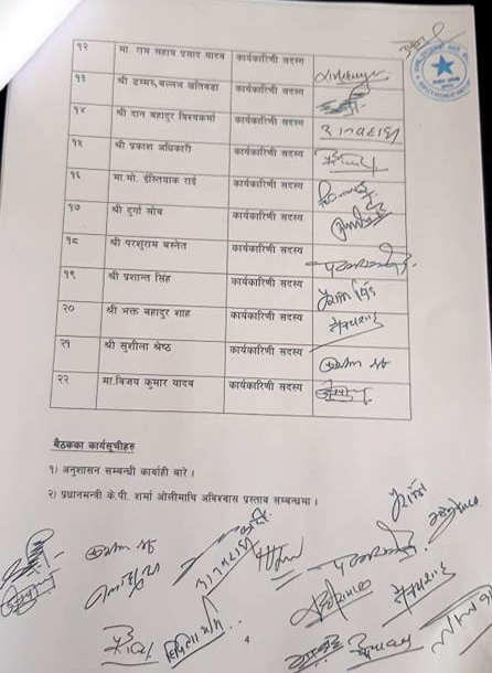 राजनैतिक दल सम्बन्धी ऐन, २०७३ को दफा ३२ को उपदफा ५ बमोजिम चारैजनाको प्रदेशसभाको सदस्य पद र पार्टीको सदस्य समेत नरहने गरी निष्काशन गरी निजहरुको प्रतिनिधित्व गरेको सम्बन्धित प्रदेशसभा सदस्य सीट रक्ति गर्न सिफारिससहित यस केन्द्रीय कार्यकारिणी समितिलाई अनुरोध गरेकोमा त्यो माग बमोजिम गर्न गराउन केन्द्रीय कार्यकारिणी समितिको बैठकबाट सर्वसम्मतिले स्वीकृत गर्ने निर्णय गरेको निर्णयमा उल्लेख छ।