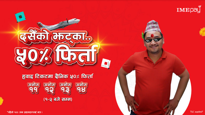 यस स्किम अन्तर्गत आइएमई पे वालेटबाट हवाई टिकट खरिद गर्दा ५० प्रतिशतसम्म क्यास ब्याकको ब्यवस्था मिलाइएको कम्पनीले जनाएको छ ।