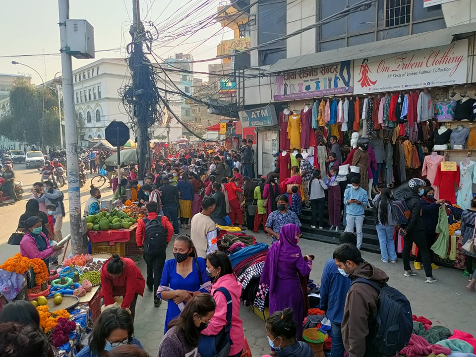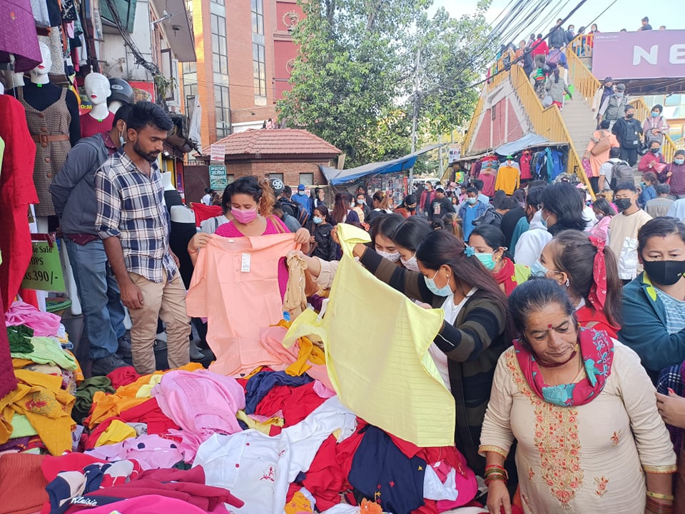 तिहारकाे रमझम बढेसँगै काठमाडौंका जमल, असन, इन्द्रचोक, ठमेल, दरबारमार्ग, भृकुटीमण्डप लगायतका ठाउँमा किनमेल गर्नेहरुको घुइँचो बढेकाे छ।
