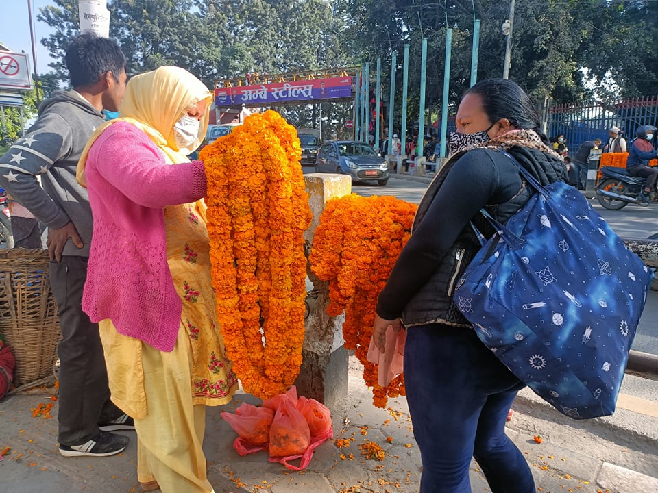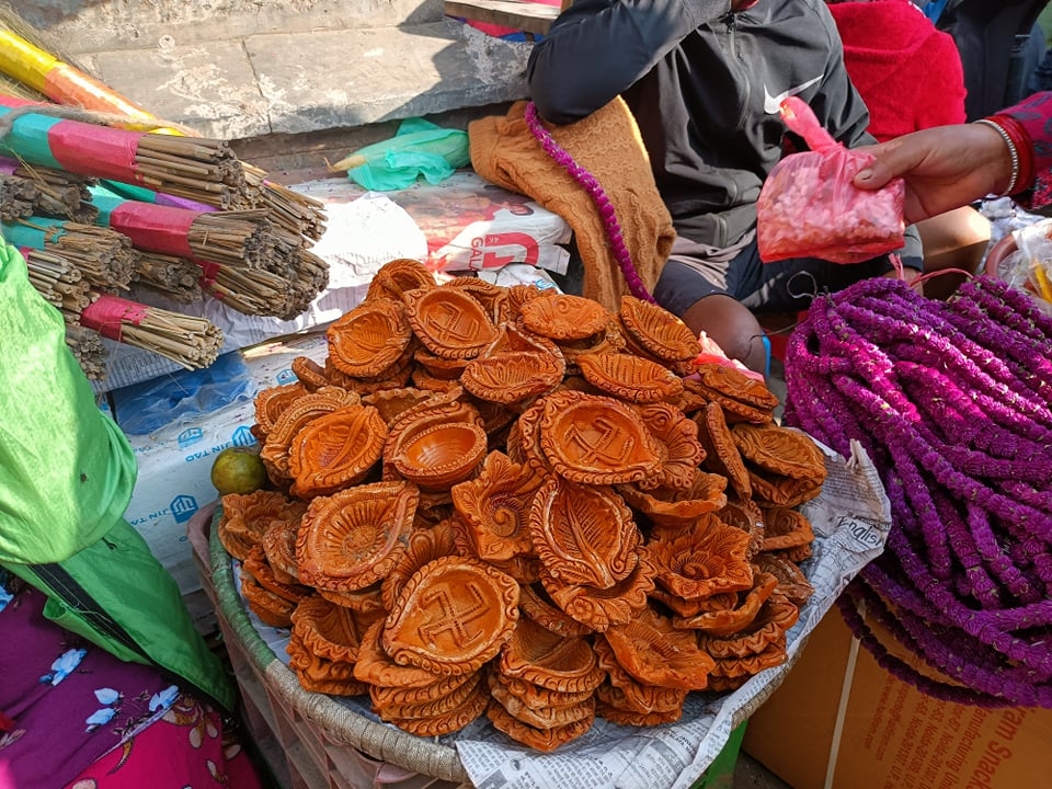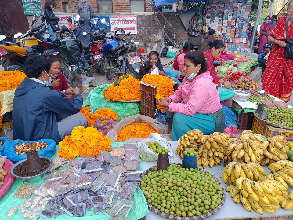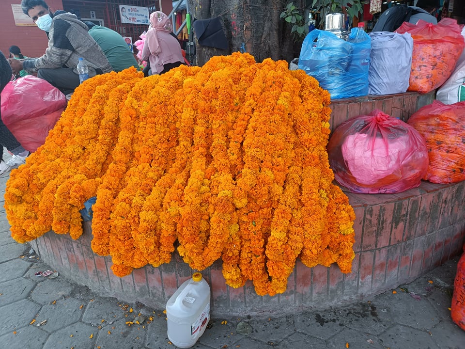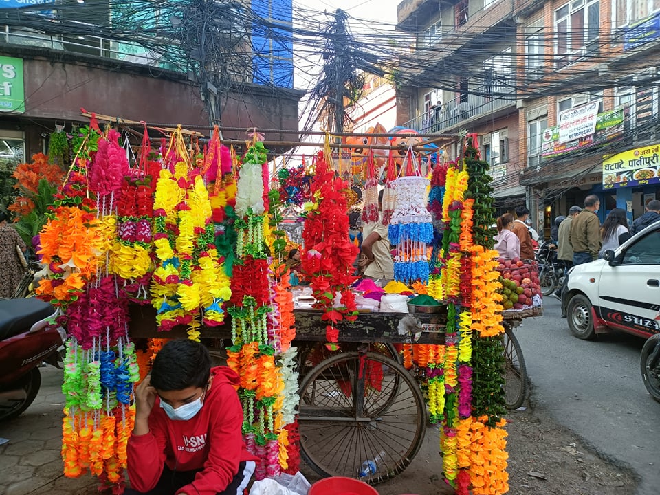 बजारमा तिहारको लागि चाहिने घर सजावटका फूलहरु, झिलिमिली बत्ति, भाइमसला, लत्ताकपडा, सप्तरंगी टीका लगायतका सामग्री किन्नेको घुइँचो बढेकाे छ ।