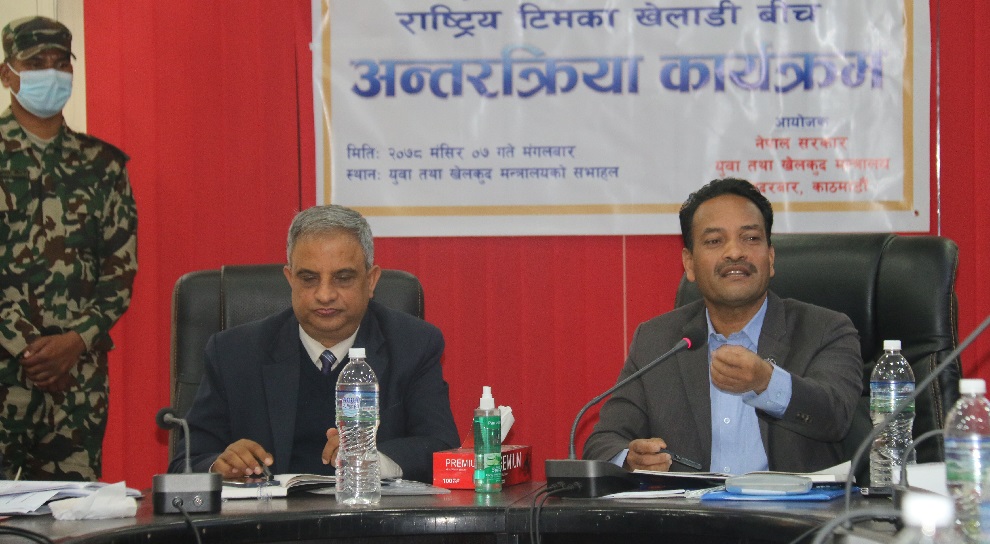 कार्यक्रममा बोल्दै मन्त्रालयका सचिव डा. दामोदर रेग्मीले मन्त्रालयले सक्षम नेतृत्व पाएकाले खेल क्षेत्रको उल्लेखनीय विकास हुनेमा आफू विश्वस्त रहेको उल्लेख गरे। नयाँ खेलाडी उत्पादन तथा पुराना खेलाडीहरुको ब्यवस्थापनमा विभागीय टिमको भूमिका प्रशंसायोग्य रहेको उल्लेख गर्दै डा. रेग्मीले आगामी दिनमा समेत त्यस प्रकारका गतिविधिहरुलाई निरन्तरता दिन आग्रह गरे।