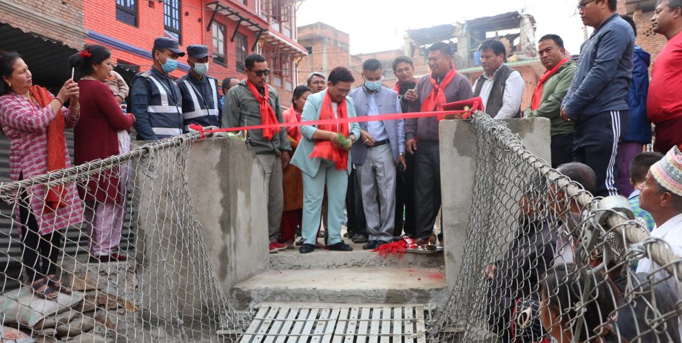 काठमाडौं। ललितपुर महानगर पालिका वडा नं २२ स्थित धार्मिक, सांस्कृतिक तथा पर्यटकीय क्षेत्रलाई जोड्ने उद्देश्यले झोलुङ्गे पुलको निर्माण गरिएको छ। कार्यविनायक र मछिन्द्रबहालबीचको सहज सम्पर्क स्थापित गर्ने उद्देश्यबाट निर्माण गरिएको सो झोलुङ्गे पुलको आज ऊर्जा, जलस्रोत तथा सिँचाइमन्त्री पम्फा भुसालले उद्घाटन गरिन।