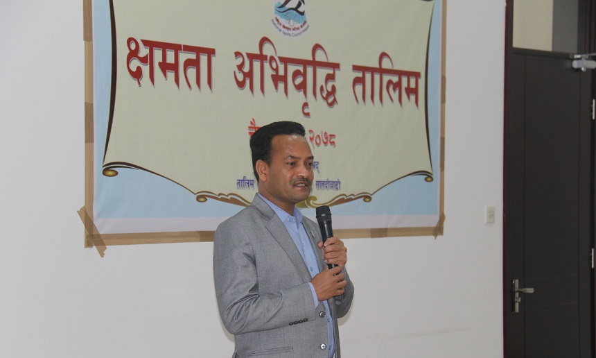 राष्ट्रिय खेलकुद परिषद् (राखेप) द्वारा ७ दिनसम्म सञ्चालित क्षमता अभिवृद्धि तालिममा राष्ट्रिय तथा अन्तर्राष्ट्रिय स्तरका प्रशिक्षकहरूले प्रशिक्षण दिने कार्यक्रम रहेको तालिम तथा प्रशिक्षण विभाग प्रमुख अर्जुन बहादुर विकले जानकारी दिए।