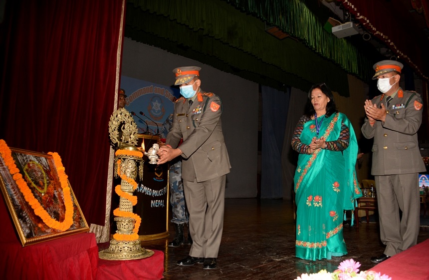 काठमाडौं। एपीएफ कमाण्ड तथा स्टाफ कलेजमा सञ्चालन हुने सातौँ समूहको एपीएफ कमाण्ड तथा स्टाफ कोर्षको सशस्त्र प्रहरी महानिरीक्षक पुष्पराम के.सी.ले बुधबार सशस्त्र प्रहरी बल नेपाल प्रधान कार्यालय हल्चोक स्वयम्भूमा आयोजित एक समारोहकाबीच पानसमा द्विप प्रज्वलन गरी उद्घाटन गरे।