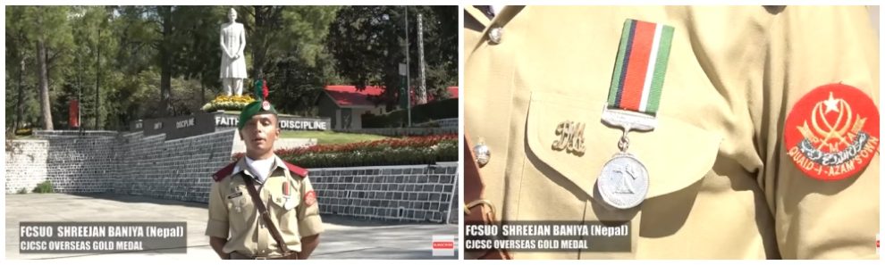 पाकिस्तान मिलिटरी एकेडेमीमा शनिबार भएको पासिङ आउट समारोहमा उत्कृष्ट विदेशी क्याडेटका रुपमा उनले सो ‘गोल्ड मेडल’ प्राप्त गरेका हुन् । नेपाली अफिसर क्याडेटलाई पदक प्रदान गर्नु तालिमका क्रममा क्याडेटले देखाएको कडा परिश्रम र समर्पणको प्रमाण भएको सेनाले जनाएको छ ।