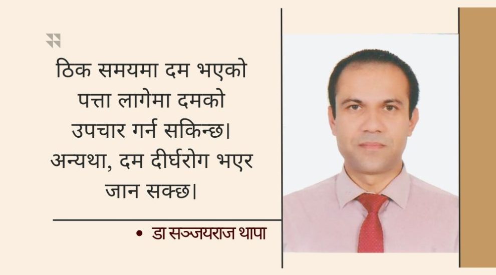 ग्राण्डी अस्पतालमा आउने १०० जना बिरामीमध्ये ५ देखि १० जना बिरामी दमका हुने गरेको छ। बालबालिकामा मौसम परिवर्तन, चिसोका कारण, रुघाखोकी, भाइरल ज्वरो हुँदा, श्वासप्रश्वास नली साँघुरिँदा दमको समस्या हुने गरेको छ। श्वासप्रश्वास नली साँघुरिँदा खोकी बढी मात्रामा लाग्नेसमेत गर्दछ। रुघाखोकी बारम्बार लाग्ने, सुत्ने र उठ्ने बेलामा लाग्ने, दौडिँदा, हाँस्दा, खेल्दा बोल्दा पनि बढी खोकी लाग्ने, एन्टिबायोटिक खादा एक दुई हप्ता ठिक हुने र बल्झिने, घ्यारघ्यार आवाज आउने यस्तो भएमा दम भएको हुनसक्छ। यस्तो भएमा तत्काल विशेषज्ञ चिकित्सककोमा लैजानुपर्छ।