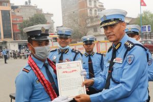 काठमाडौं। काठमाडौं उपत्यका ट्राफिक प्रहरी कार्यालय तथा अन्तर्गतमा रहेका ट्राफिक प्रहरी कार्यालयमा कार्यरत प्रहरी नायव निरीक्षकबाट प्रहरी वरिष्ठ नायव निरीक्षक पदमा पदोन्नति भएको २८ जना प्रहरी अधिकृतहरूलाई दर्ज्यानी...