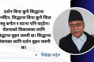 दर्शन पद्धतिको सिद्धान्त हो। सिद्धान्त पद्धति र व्यवहारबाट प्राप्त ज्ञानको सङ्ग्रह हो। ज्ञान परिवर्तनको नियम हो। परिवर्तन समयको परिणाम हो। समय आवश्यकताको बोध हो। आवश्यकता जीवनको बोध हो। जीवन बोध...