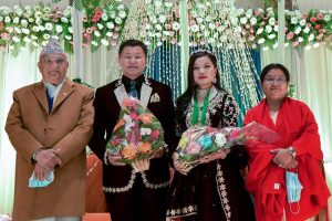 काठमाडौं। प्रदेश १ का मुख्यमन्त्री शेरधन राई दम्पत्तिलाई प्रधानमन्त्री केपी ओलीले शुभकामना दिएका छन्। आइतबार ४९ वर्षको उमेरमा मुख्यमन्त्री राईले २३ वर्षीया मोडल जाङमु शेर्पासँग विवाह गरेपछि आयोजित रिसेप्सन पार्टीमा...
