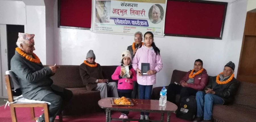 काठमाडौं, १४ माघ । साहित्यकार भुवनहरि सिग्देलको संस्मरणात्मक कृति ‘अद्भुत तिवारी’ सार्वजनिक गरिएको छ । राजधानीमा एक काय्र्रक्रमबीच लेखक सिग्देलका दुई नातिनीहरूले उक्त पुस्तक सार्वजनिक गरेका हुन् ।